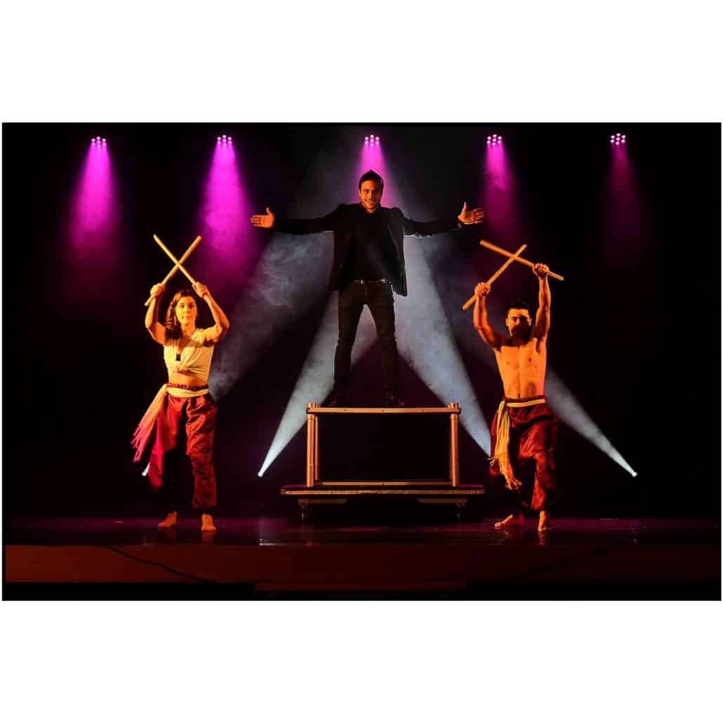 El Mago Xacobe presenta su nuevo espectáculo de gran formato lleno de peligros, desafíos, baile, apariciones, desapariciones, sombras chinescas y el ritmo musical de los temas más actuales que siempre acompañan sus números.